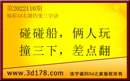 3d第2022110期太湖字谜:碰碰船,俩人玩,撞三下,差点翻