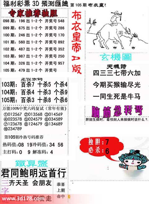 3d第2014105期布衣天下皇帝详解: