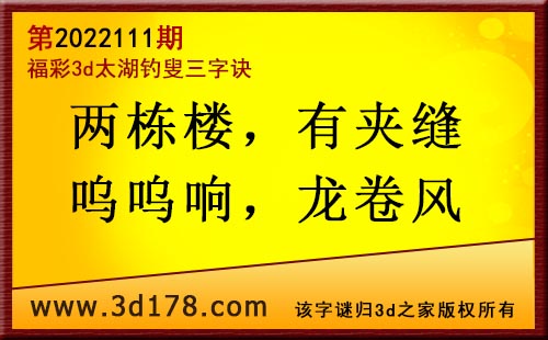 3d第22111期太湖字谜:两栋楼,有夹缝,呜呜响,龙卷风
