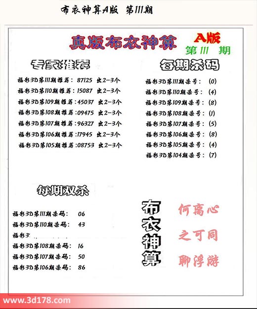3d之家布衣图库之布衣神算图第2022111期详解: