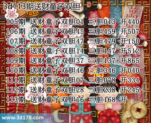 下面我们一起来回顾一下3d之家胆码图送财童子三胆近期推荐详情: