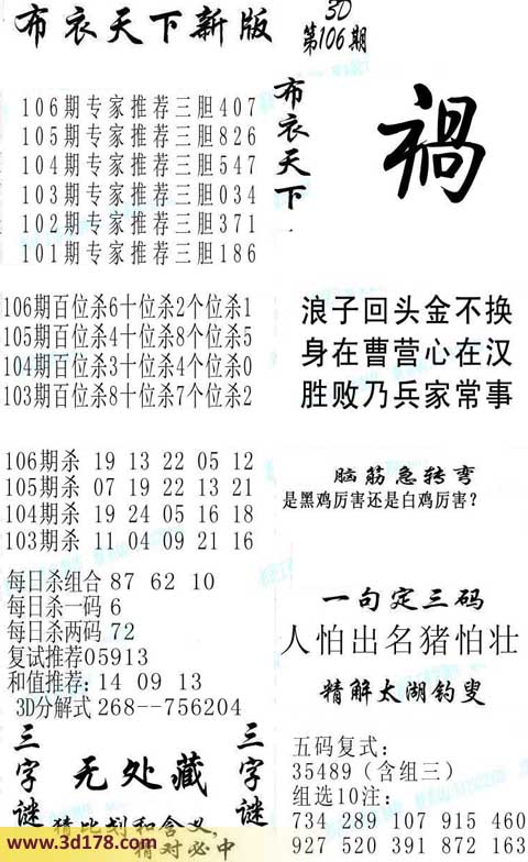该布衣图库由福彩3D之家3D图库频道原创,仅供彩民参考,温馨提供。