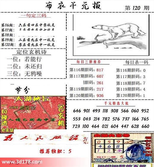 福彩3d第2022120期布衣千元报图详情分析如下:
