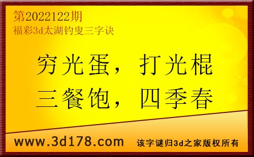 3d第22122期太湖字谜:穷光蛋,打光棍,三餐饱,四季春