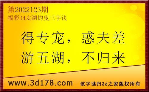 3d第22123期太湖字谜:得专宠,惑夫差,游五湖,不归来