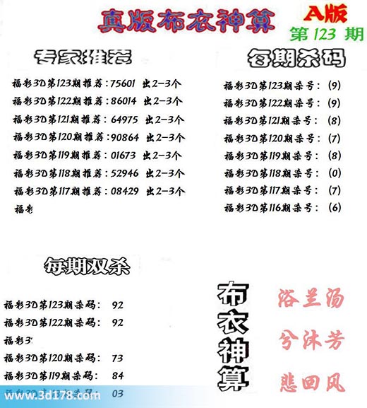 3d之家布衣图库之布衣神算图第2022123期详解:
