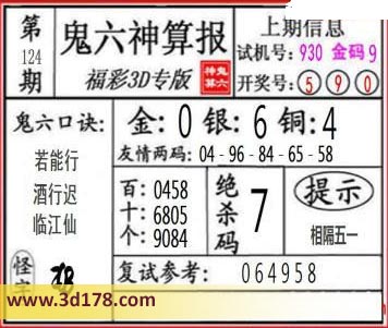 3d第22124期鬼六神算报为您推荐鬼六口诀: