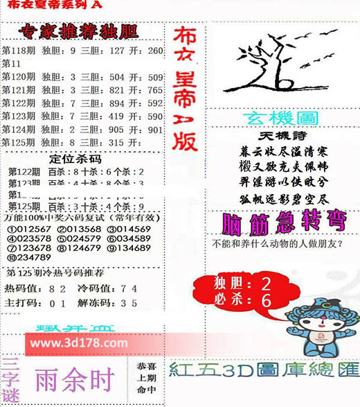 福彩3d第2022125期布衣皇帝A版布衣专家独家推荐: