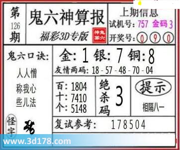 3d第22126期鬼六神算报为您推荐鬼六口诀: