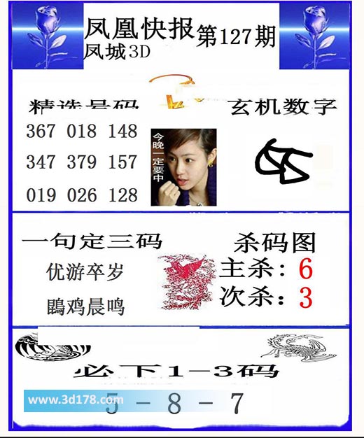 福彩3d凤凰快报图第22127期精选号码推荐: