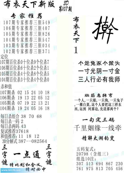 3d第2014107期布衣天下新版: