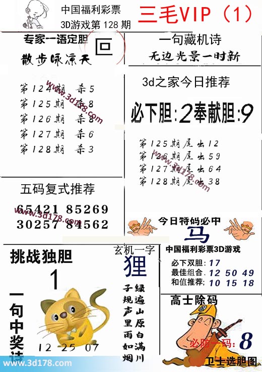 3d第2022128期三毛图库推荐: