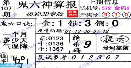 3d第2014107期鬼六神算报:
