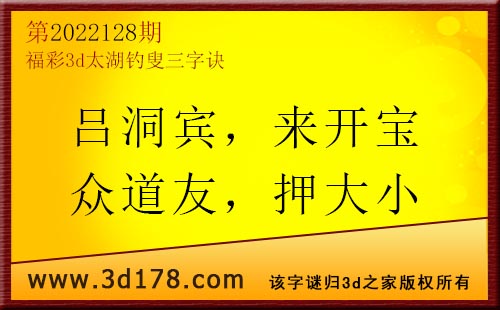 3d第22128期太湖字谜:吕洞宾,来开宝,众道友,押大小