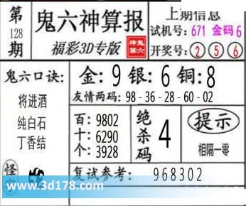 3d第22128期鬼六神算报为您推荐鬼六口诀: