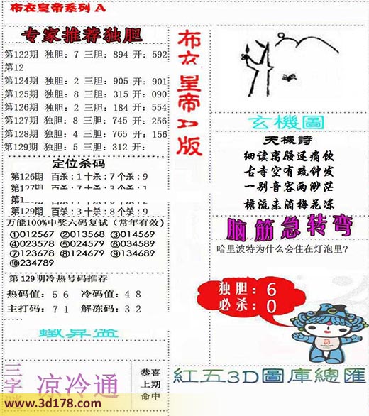 福彩3d第2022129期布衣皇帝A版布衣专家独家推荐: