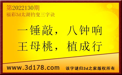 3d第22130期太湖字谜:一锤敲,八钟响,王母桃,植成行