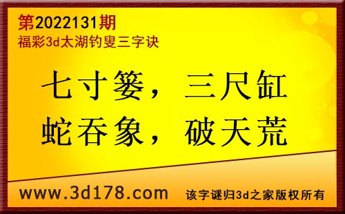 3d第22131期太湖字谜:七寸篓,三尺缸,蛇吞象,破天荒