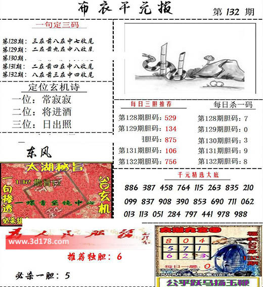福彩3d布衣图库布衣千元报第2022132期定位玄机诗: