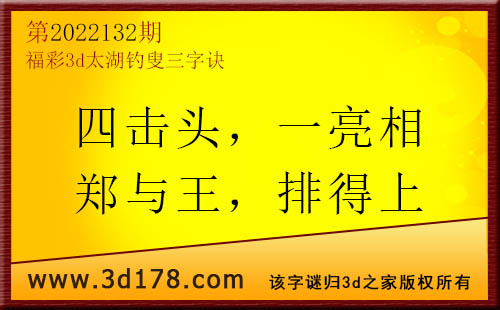 3d第2022132期太湖字谜:四击头,一亮相,郑与王,排得上