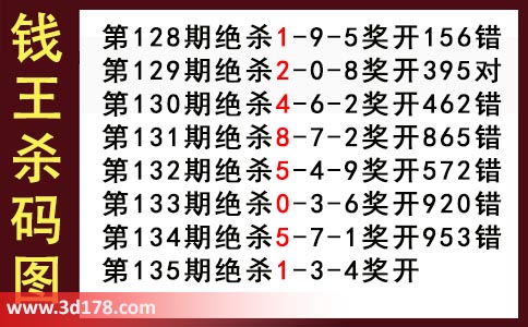 近期3d钱王杀码具体详情: