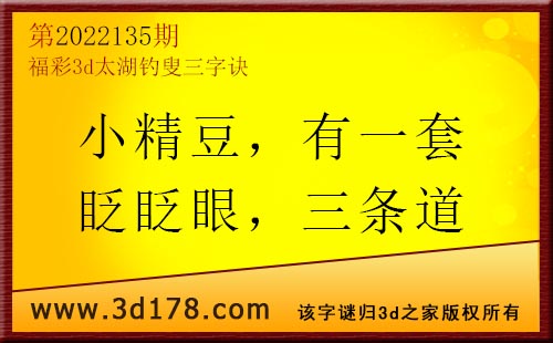 3d第22135期太湖字谜:小精豆,有一套,眨眨眼,三条道