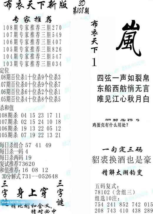 该布衣图库由福彩3D之家3D图库频道原创,仅供彩民参考,温馨提供。