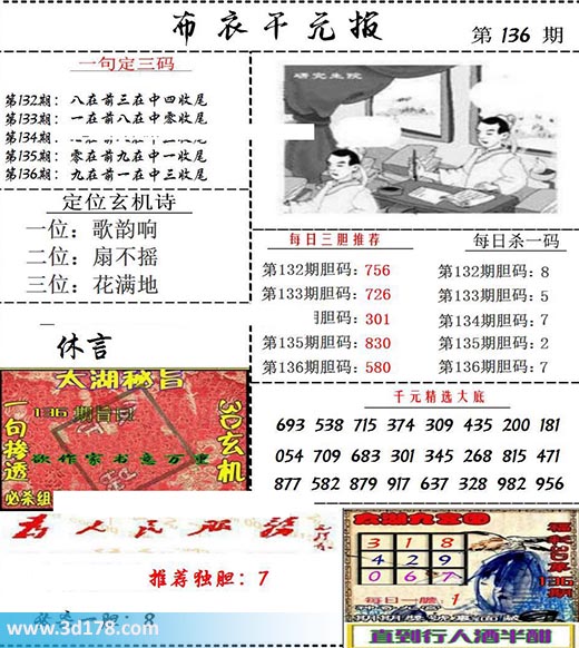 福彩3d布衣图库布衣千元报第2022136期定位玄机诗: