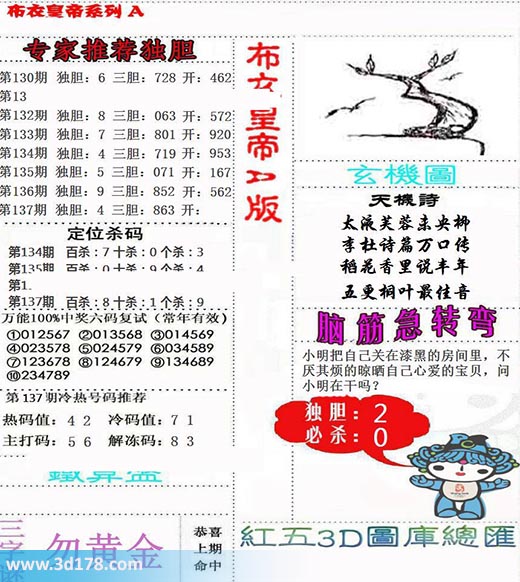 福彩3d第2022137期布衣皇帝A版布衣专家独家推荐: