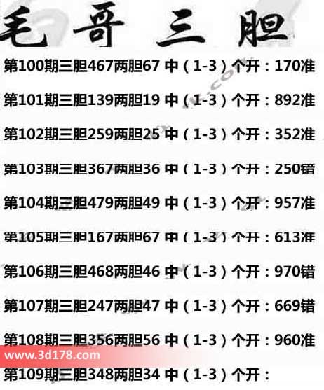 毛哥三胆图库由3D之家3D图库频道原创,仅供彩民参考,温馨提供。