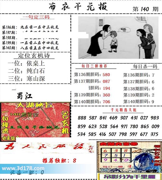 福彩3d布衣图库布衣千元报第2022140期定位玄机诗: