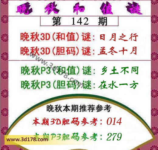 晚秋3D(和值)谜:日月之行