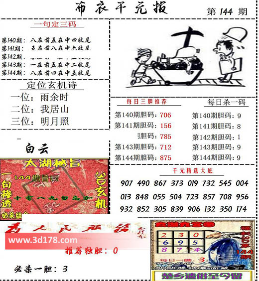 福彩3d布衣图库布衣千元报第2022144期定位玄机诗: