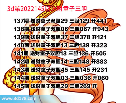 下面我们一起来回顾一下3d之家胆码图送财童子三胆近期推荐详情: