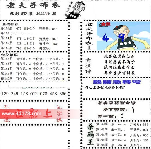 福彩3d第2022146期老夫子布衣图详情: