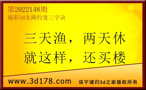 3d第22148期太湖字谜:三天渔,两天休,就这样,还买楼