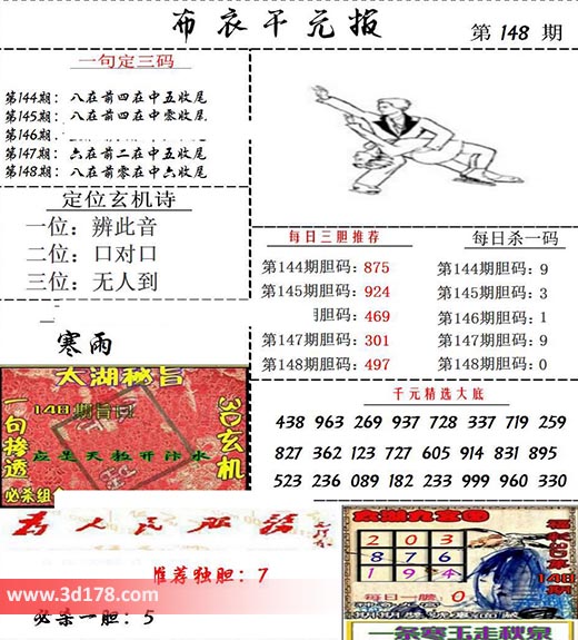 福彩3d第2022148期布衣千元报图详情分析如下: