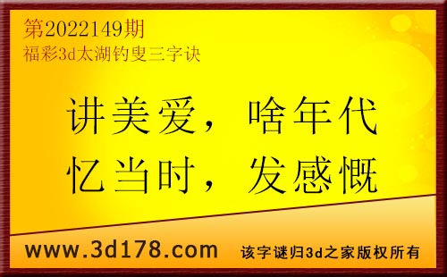 3d第22149期太湖字谜:讲美爱,啥年代,忆当时,发感慨