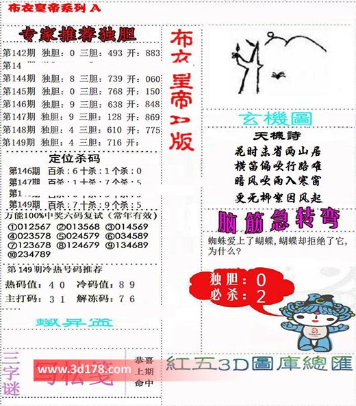 福彩3d第2022149期布衣皇帝A版布衣专家独家推荐: