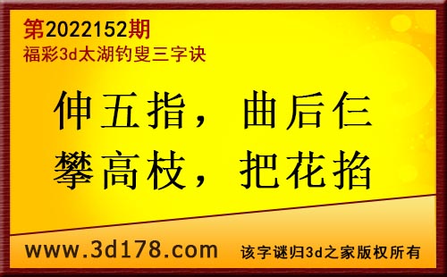 3d第22152期太湖字谜:伸五指,曲后仨,攀高枝,把花掐