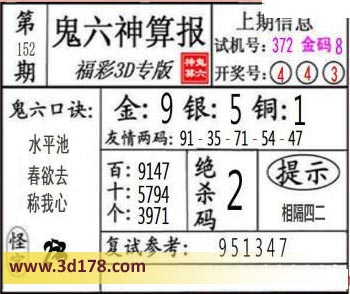 3d第22152期鬼六神算报为您推荐鬼六口诀: