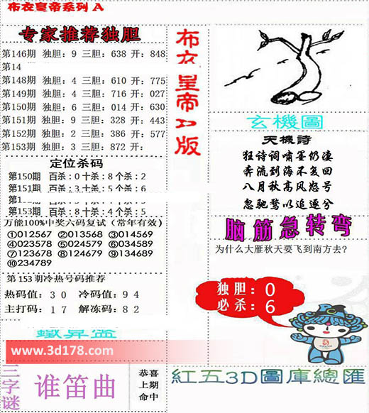 福彩3d第2022153期布衣皇帝A版布衣专家独家推荐: