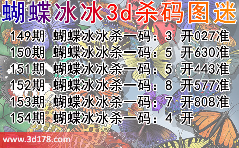 第2022154期3d蝴蝶冰冰杀码图杀号推荐分析: