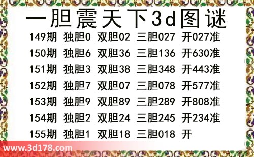一胆震天下三胆图库由3d之家3d图库频道原创,仅供彩民参考,温馨提供。