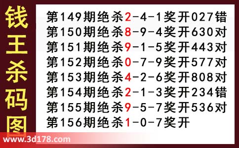 该钱王杀码图由3d之家3d图库原创,仅供彩民参考,温馨提供。