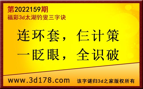 3d第2022159期太湖字谜:连环套,仨计策,一眨眼,全识破