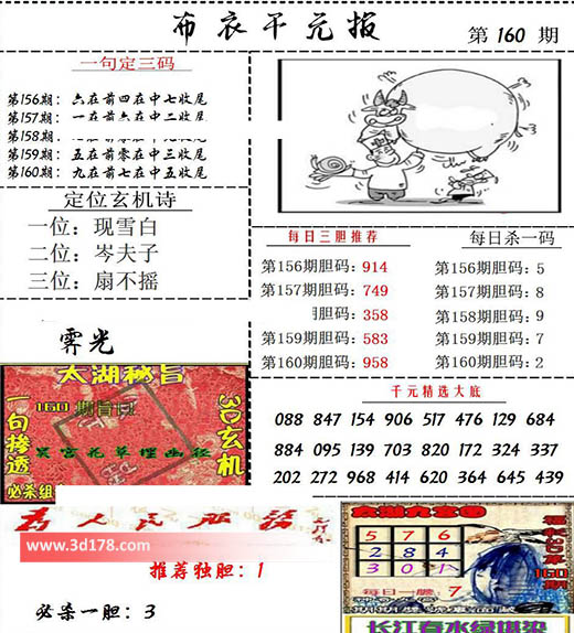福彩3d布衣图库布衣千元报第2022160期定位玄机诗: