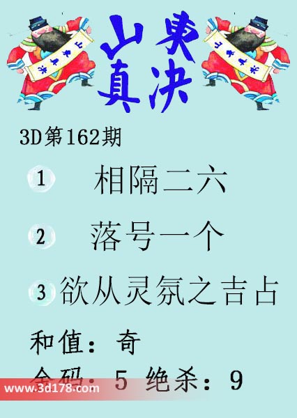 福彩3d第2022162期山东真诀图如下所示: