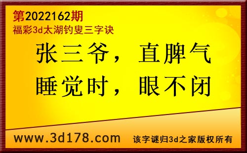 3d第2022162期太湖字谜:张三爷,直脾气,睡觉时,眼不闭