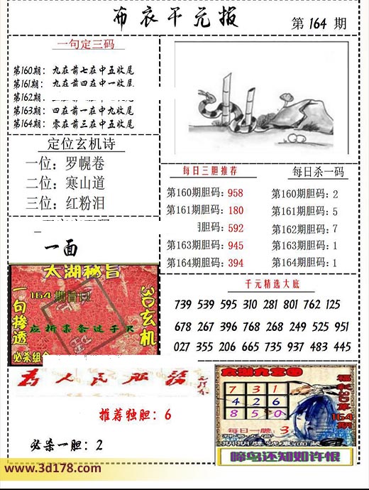 福彩3d第2022164期布衣千元报图详情分析如下: